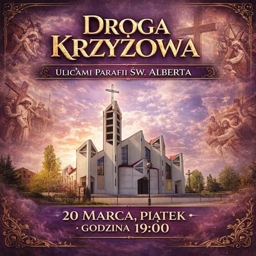 Serdecznie zapraszamy mieszkańców osiedla, sympatyków parafii na Drogę Krzyżową ulicami naszego osiedla, która odbędzie się w piątek o godz. 19:00.